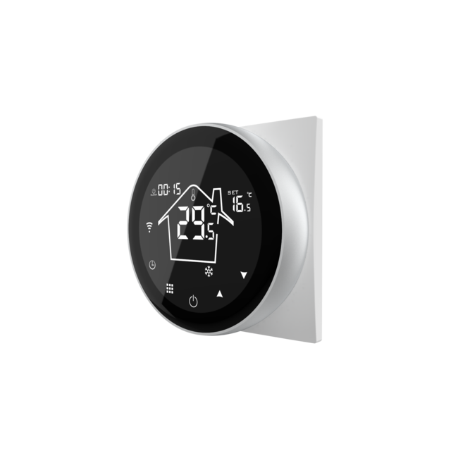 De gebruiksvriendelijke PRF-80 Wifi elektrische vloerverwarming thermostaat die bedienbaar is met de APP. De thermostaat is bedienbaar met een soft touch toetsen werkt op zowel ruimtetemperatuur als vloertemperatuur, combinatie ervan kan ingesteld worden op de thermostaat. De PRF-80 thermostaat kan worden ingebouwd in een standaard inbouwdoos.